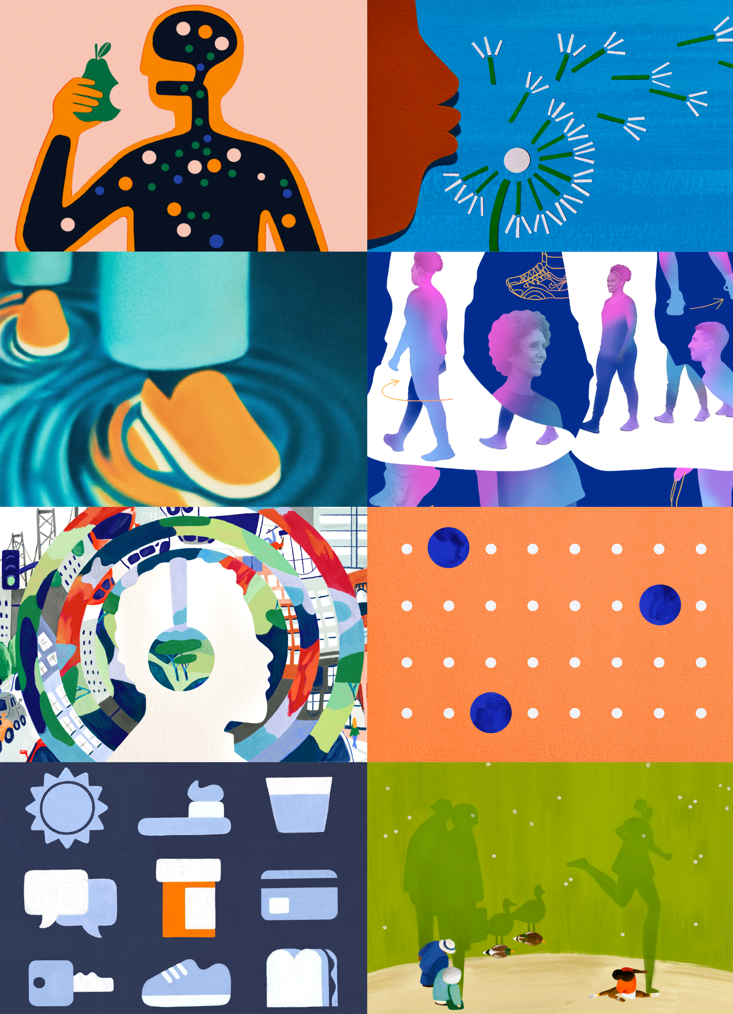 Editorial illustration and art direction for Apple Health. In collaboration with Appleās Health Team, a diverse visual approach lead to a growing family of styles that compliment each article in the Health app.
